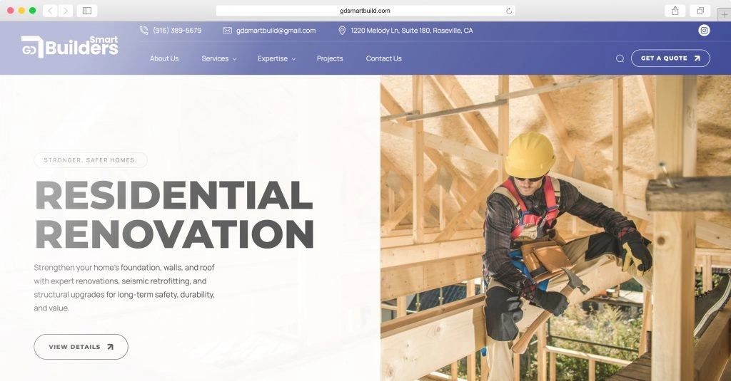 VELLCO Media, Inc. collaborated with GD Smart Builders, Inc. to develop a modern, results-driven website that reflects the company’s leadership in structural renovation. The objective was to build a digital platform that communicates trust, expertise, and service excellence while driving qualified leads. With a focus on clean design, optimized content, and mobile responsiveness, the new website highlights GD Smart Builders’ residential and commercial capabilities across Northern California. The site now serves as a central hub for inquiries, project showcases, and brand storytelling – empowering the client to connect with property owners, investors, and industry partners more effectively.